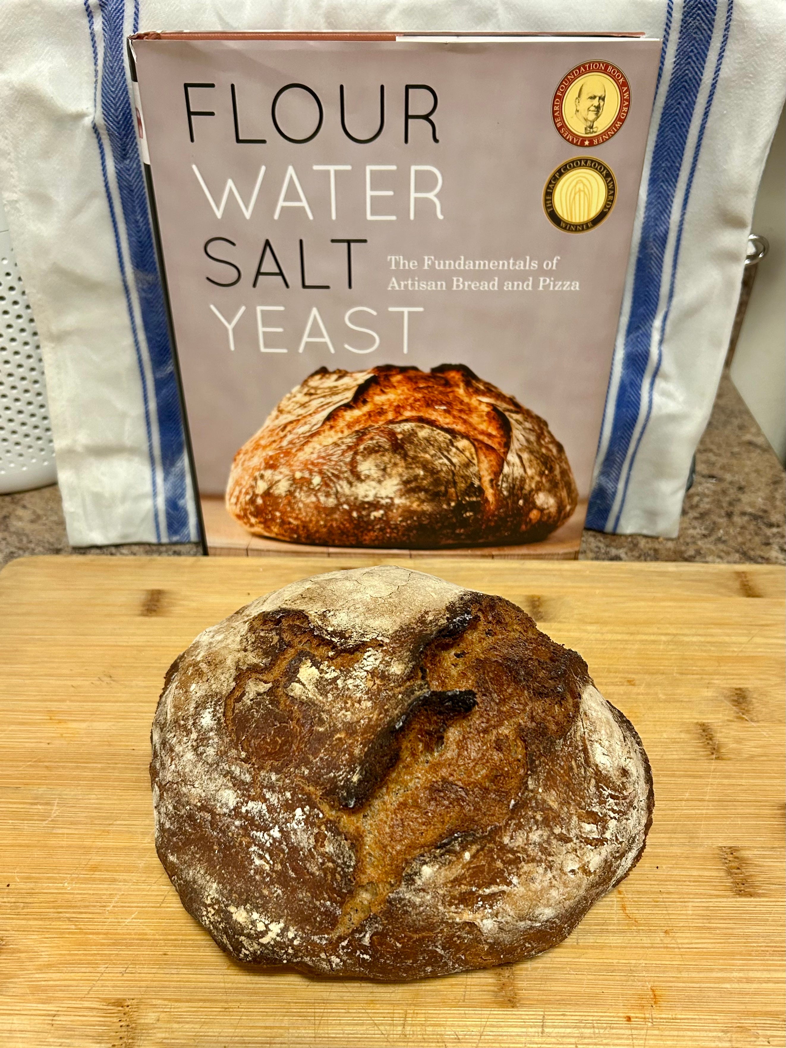 For Christmas 2024, my brother and sister-in-law gifted us a copy of Flour Water Salt Yeast: The Fundamentals of Artisan Bread and Pizza. It took us a little time to acquire the bread making essentials, but I am happy to report that we successfully made our first whole wheat boule this past weekend. If you are new to breadmaking, I recommend picking up a copy of this book. If you are not interested in making your own bread, I’m going to also tell you about some places around town who will bake it fresh for you.